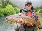 | Brian: When I first started dating my now wife Mary (house manager at Futa Lodge), she had taken an internship with a rafting company in Futa to finish her degree in global tourism. Since we'd only been dating for a few months I figured I had to go or probably lose her. So I started investigating the place and, call it destiny or not, I found trout paradise. We went and we fell in love with the Futa Valley and each other. We also maintain a home in the valley not far from the lodge. |