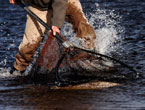 - First is the Ibera Marshland itself. We access the Ibera Marshland and its vast labyrinth of creeks, ponds and flowing streams by boat—and rides are anywhere from 5 to fifty minutes. This area is normally fished with 6 weight rods and is more technical. We fish normally from the platform of our Hells Bays skiffs and both guide and angler need to be very quiet and present soft casts to the dorado with little disturbance. The iberá marsh is a very quiet place so any noise or mistake will alert the fish. Fantastic takes occur everyday in these conditions at the marsh-- normally we see the wakes coming to hit the streamers right below the surface. This is usually followed by an explosion of the yellow submarine! Floating weight forward tropical lines are the norm for this hybrid of bonefish and trout-style angling.