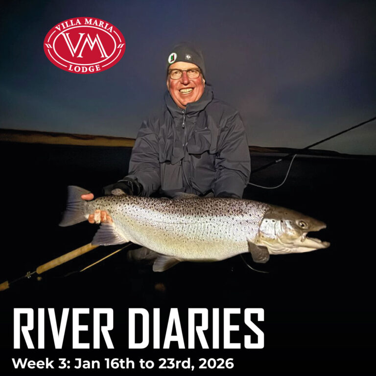 A special highlight belongs to John, visiting Villa María Lodge for the first time. After a rapid and impressive adaptation to the river’s rhythm, he landed an outstanding 21-pound hen — fresh from the sea and in exceptional condition. A powerful fish and a memorable first experience on the Río Grande.